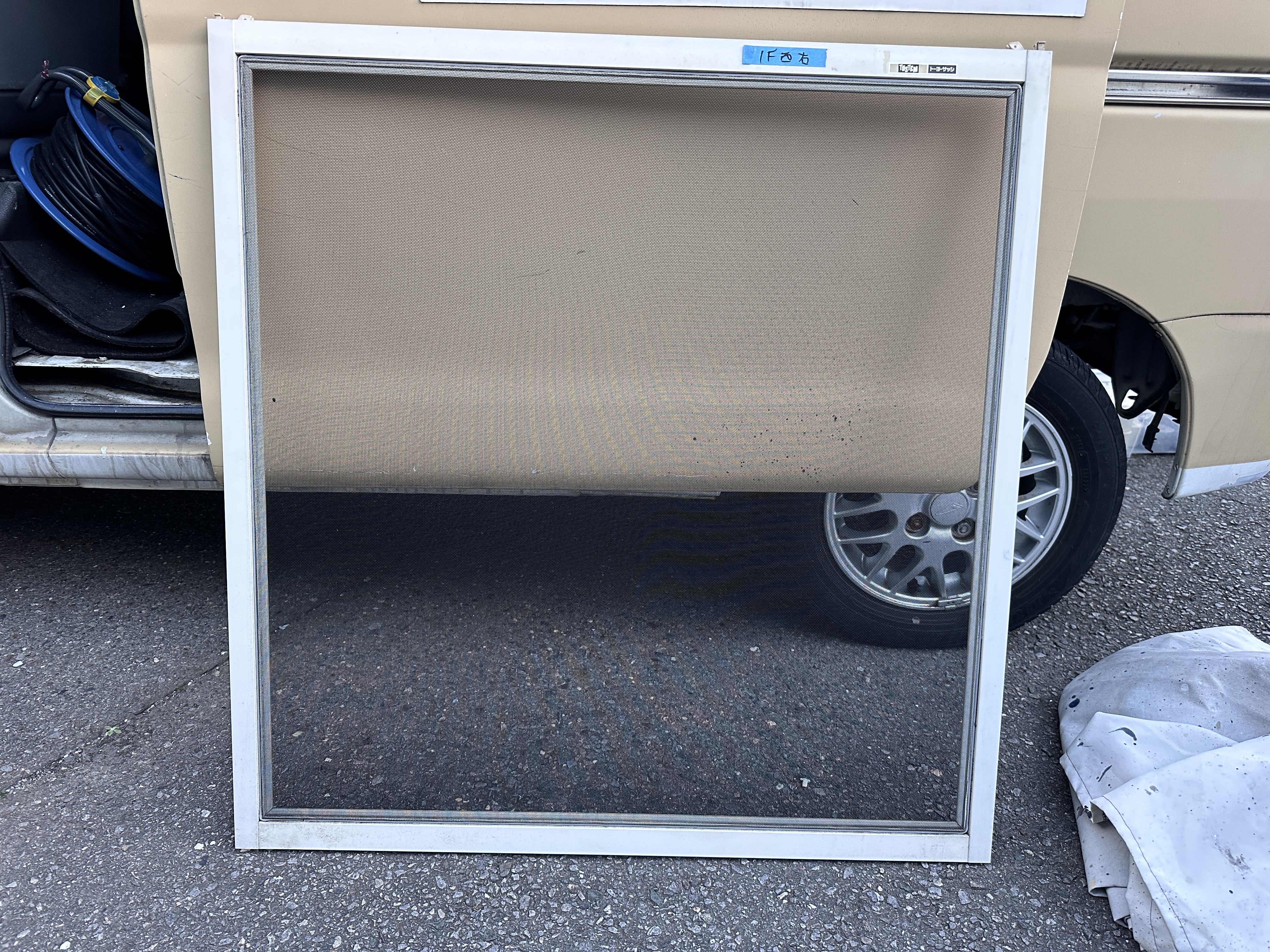 現在、網戸は張り替えを終え、明日の搬入・設置を待っている状態です。