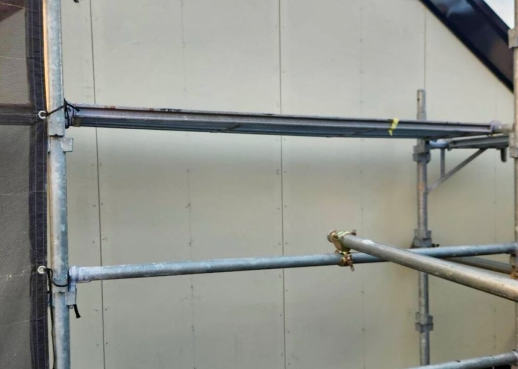 【高圧洗浄後、付帯部のケレン作業】