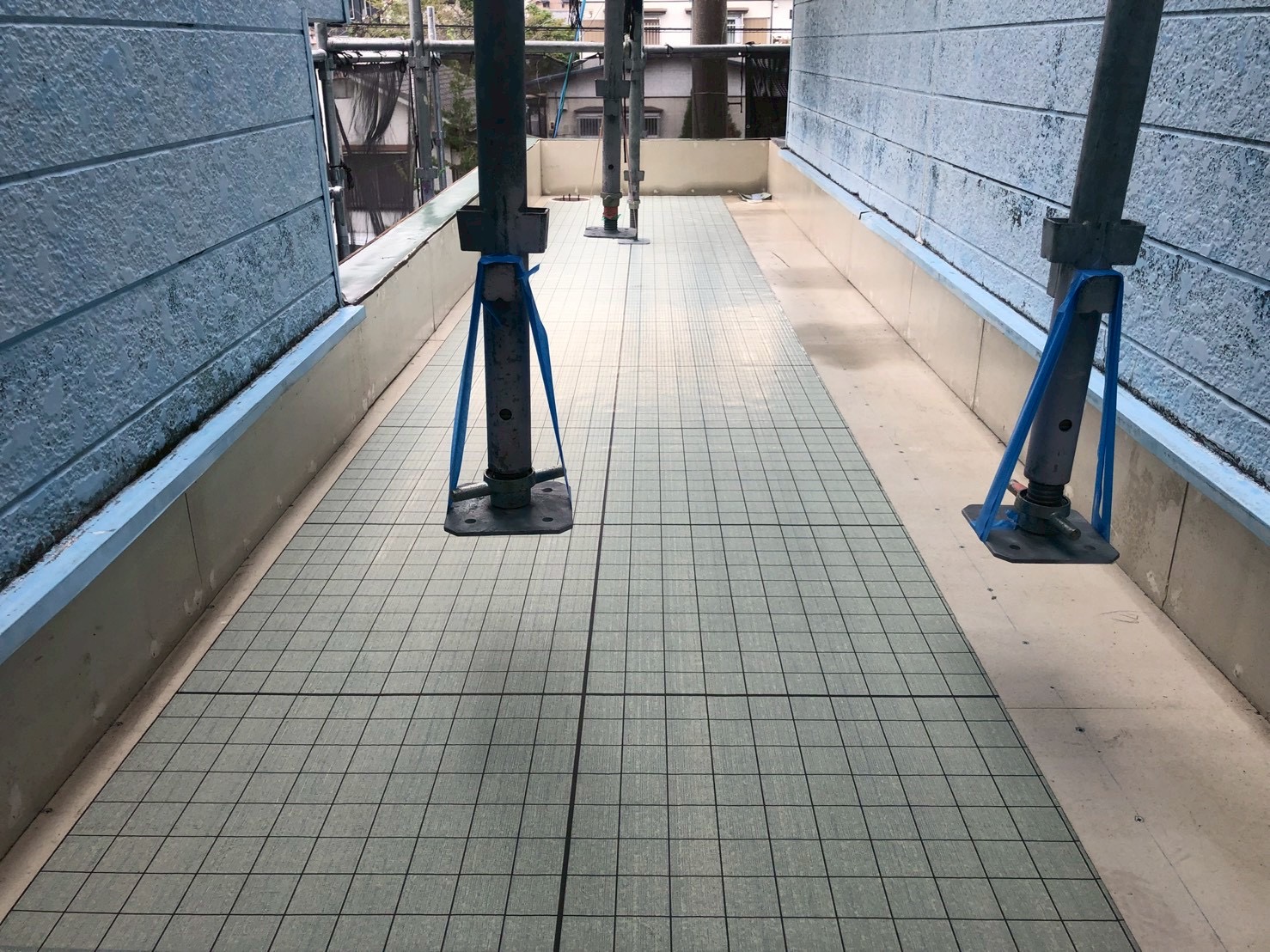 下地と防水層の間に通気シートを敷きました。