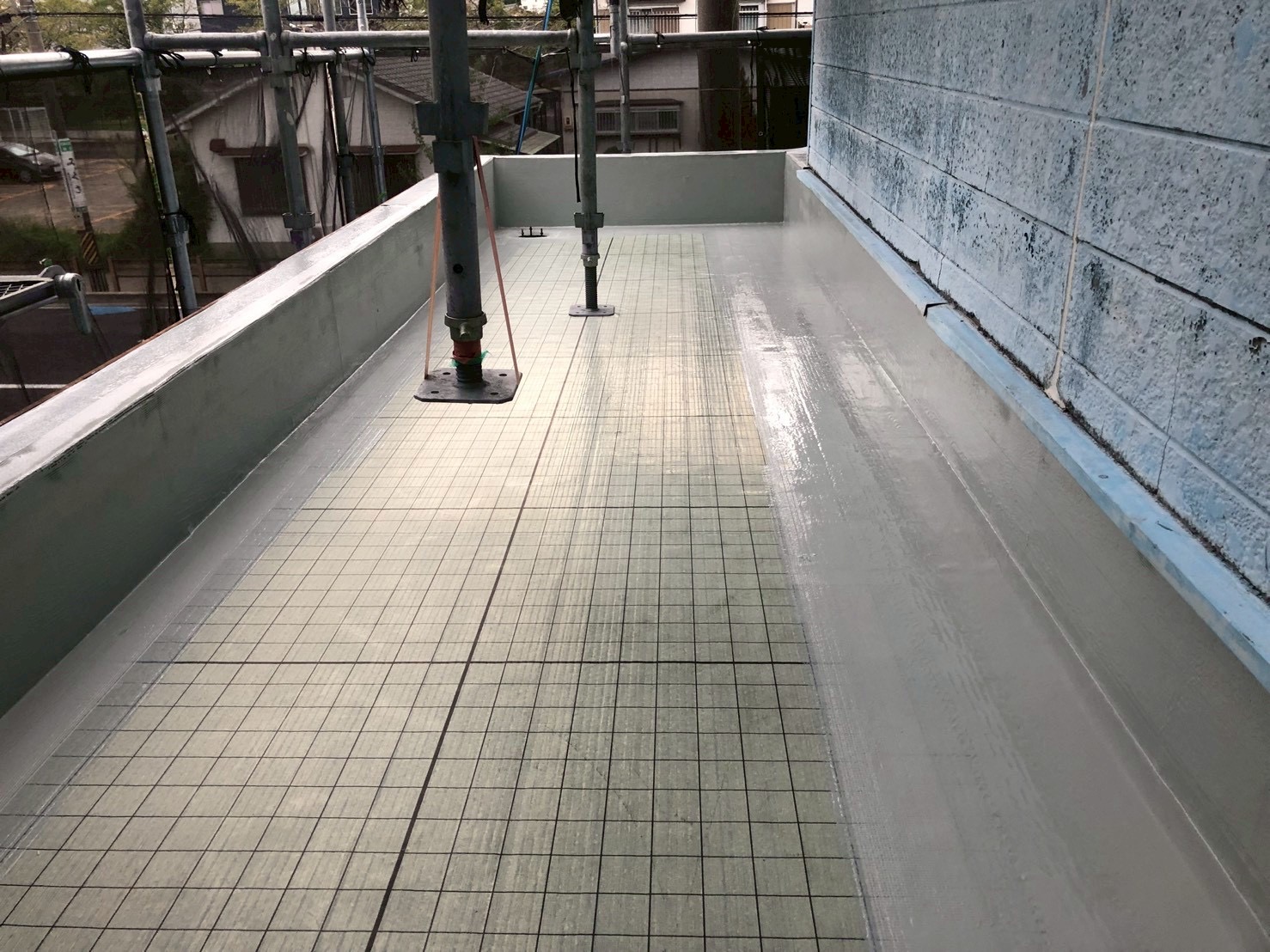 今後、防水層の膨れなどを防止する大事な工程です。