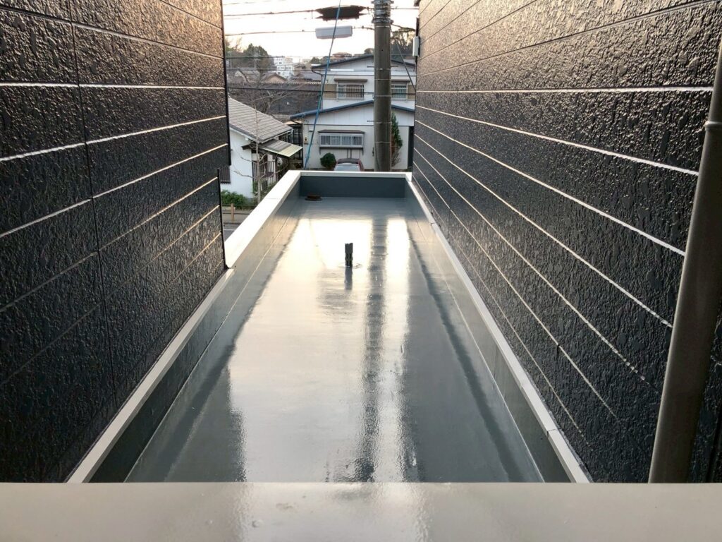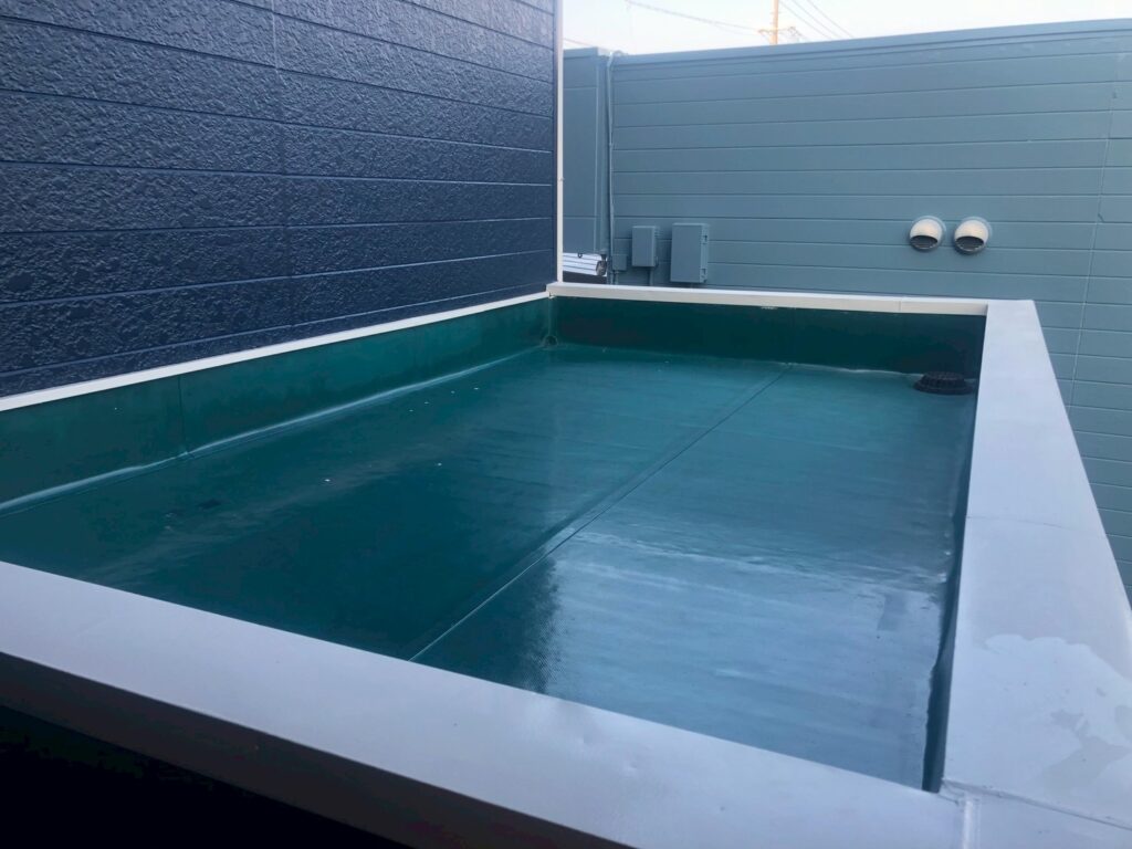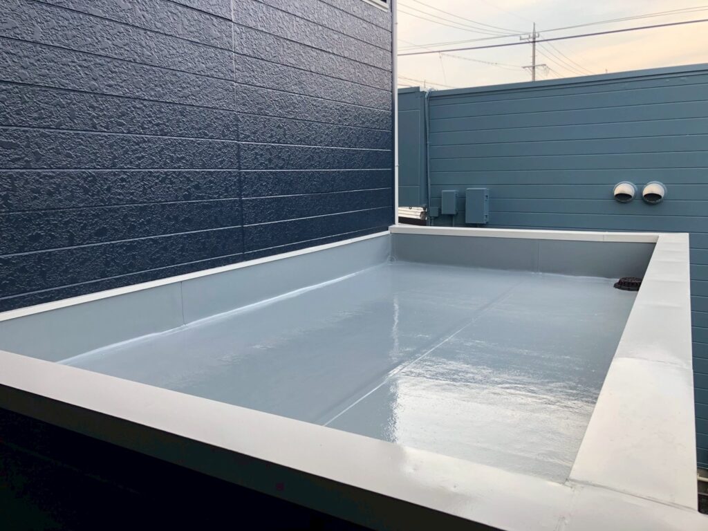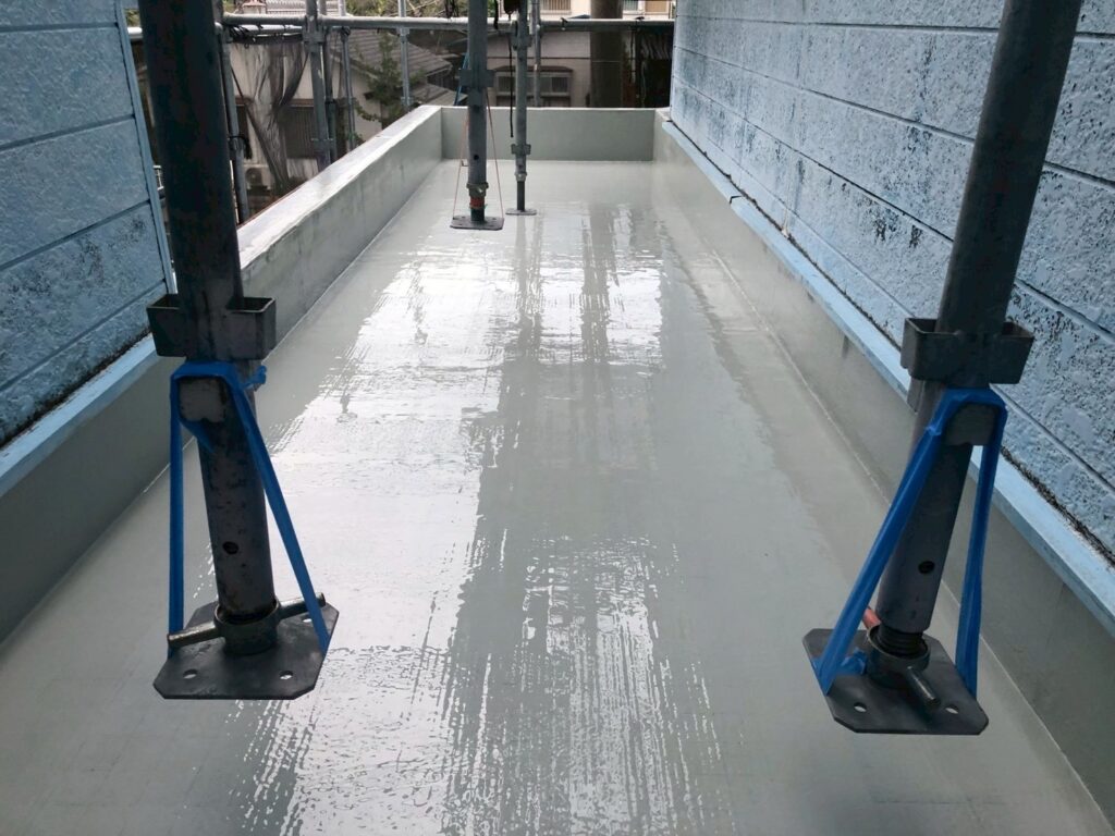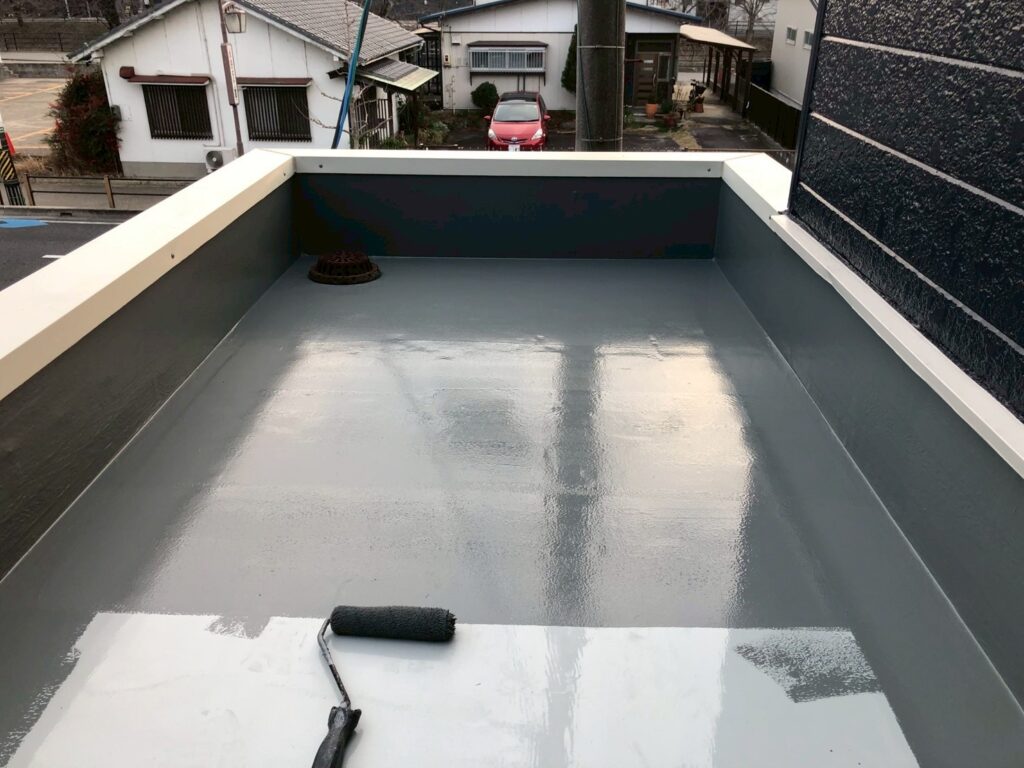 防水層の機能を維持し、雨漏りを防ぐための保護材のトップコートを塗布しました。