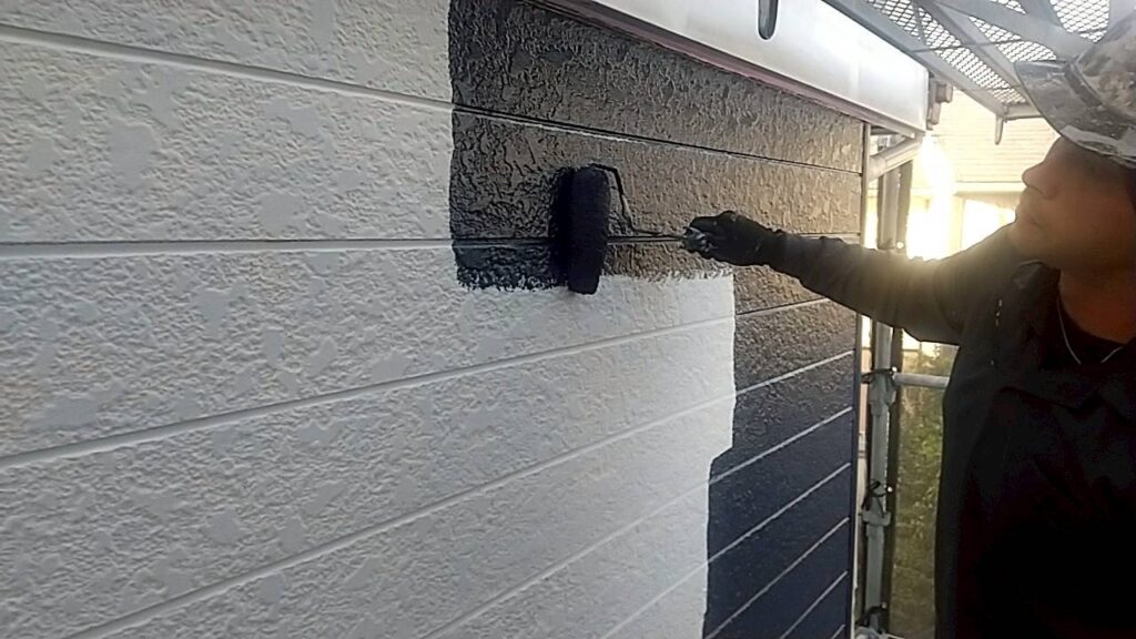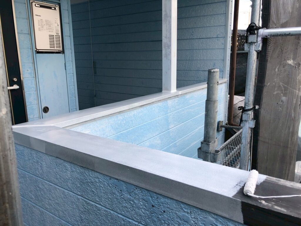 弱っていた素材と上塗り塗料の吸い込みを無くし、剥がれづらくするために下塗り剤をしっかり塗っていきました。