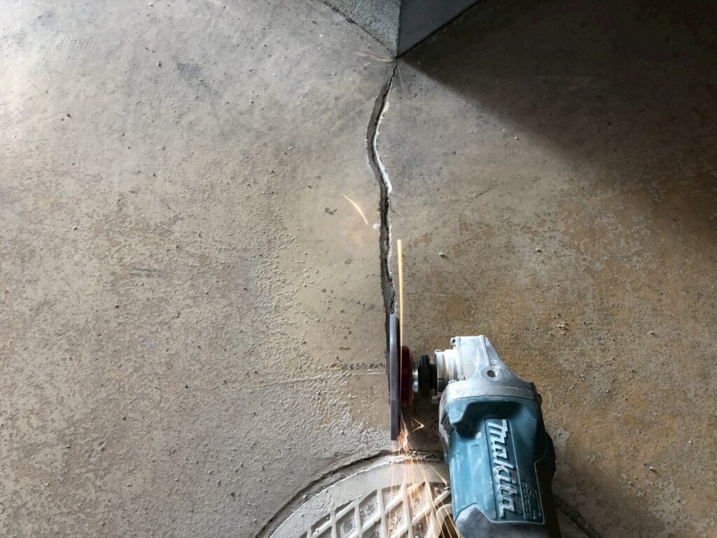 電動工具を使用してひび割れに沿ってU型(またはV型)にカットしました。