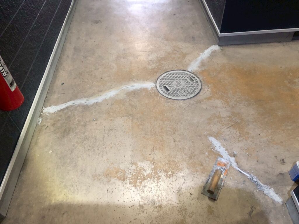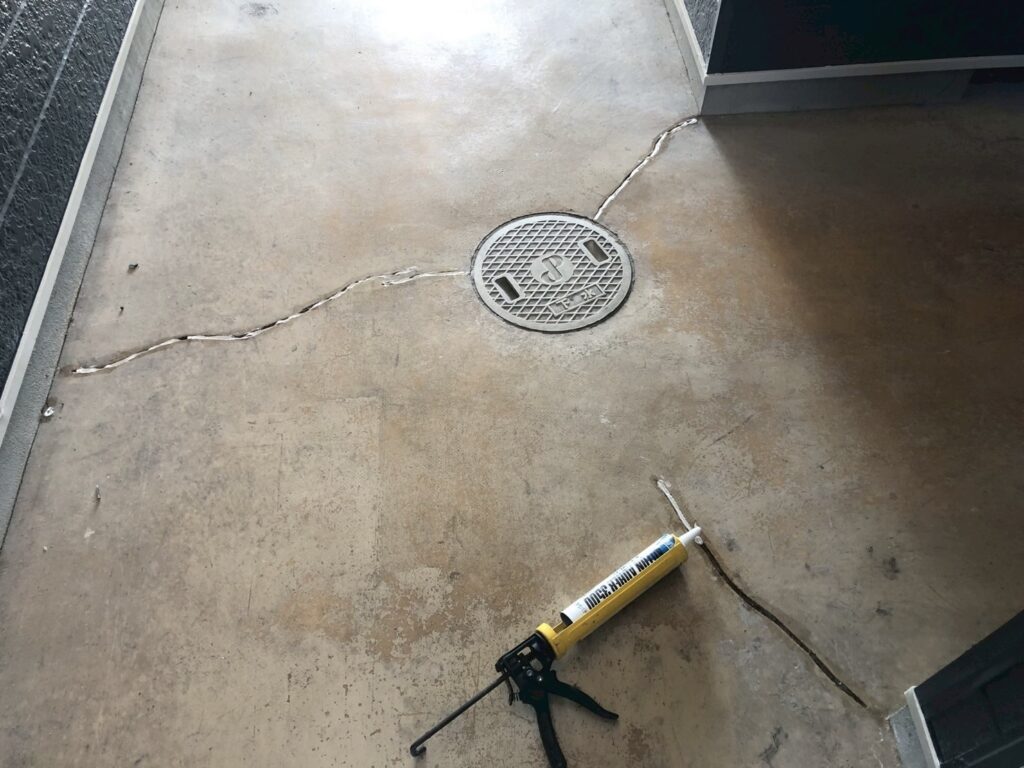 床にヒビ割れ症状がありました。このまま放置してしまうと、ヒビ割れが大きくなる可能性がありますので、早めの対処が必要です。