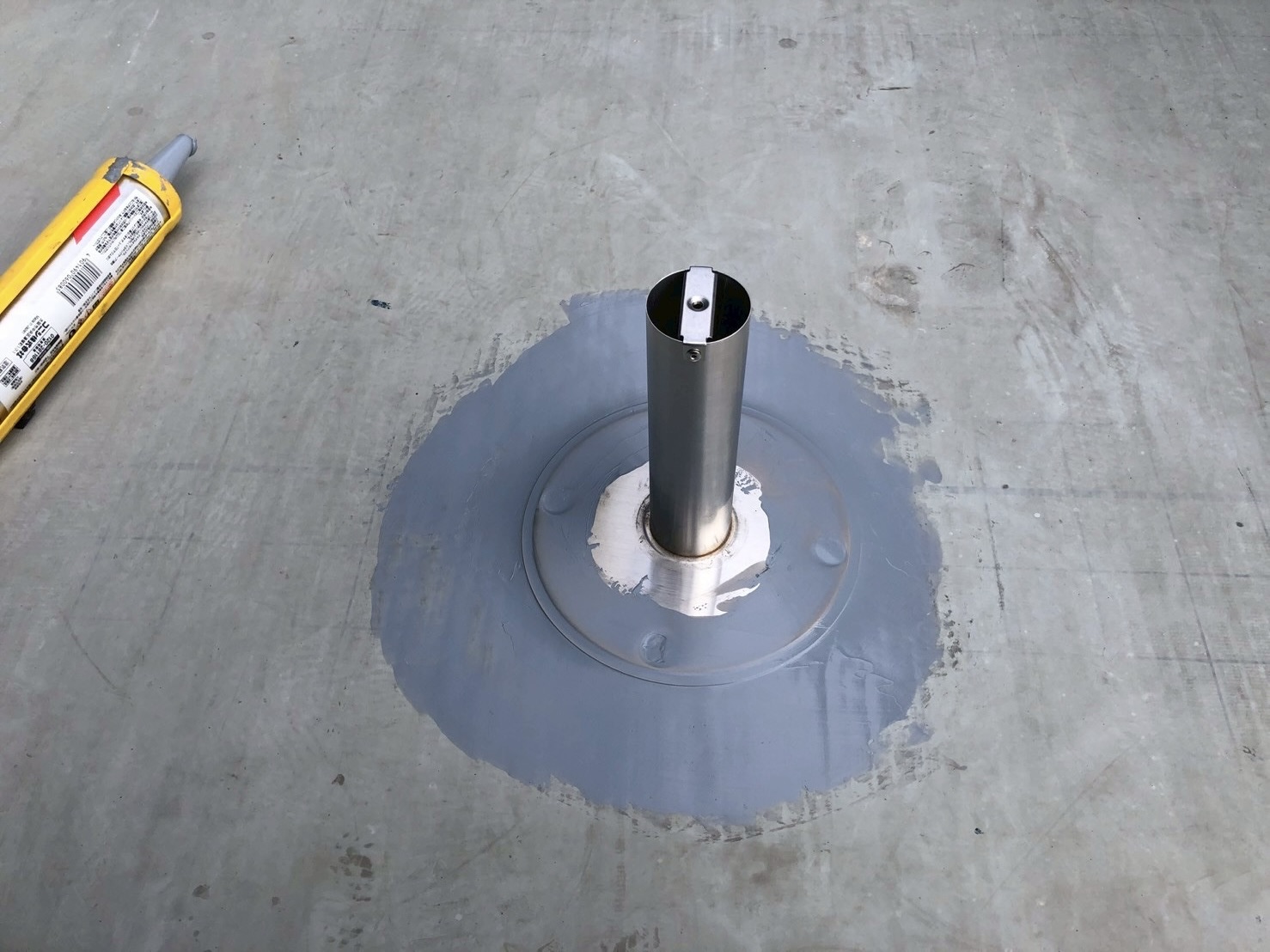 ウレタン2層目塗布後、防水層の下に溜まった水蒸気を外へ逃す役割がある脱気筒を取り付けました。